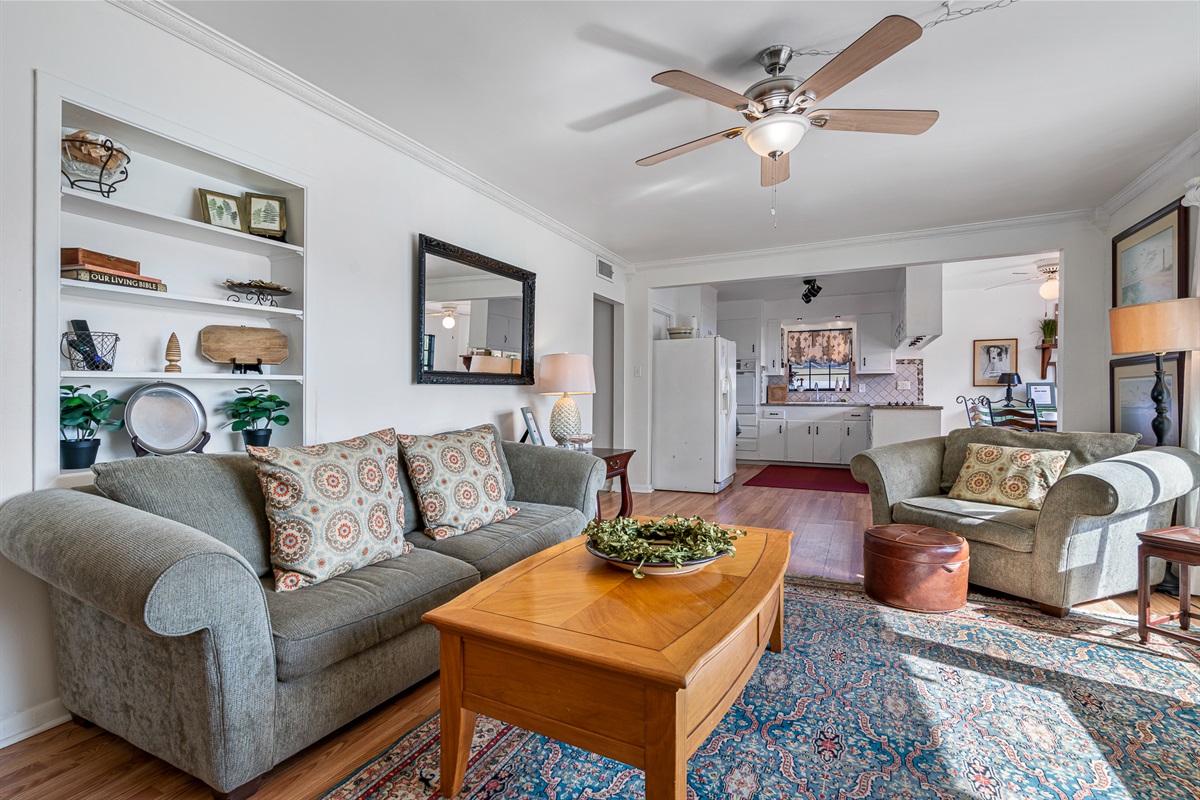 The home has two full bathrooms, one just remodeled with a luxury rain shower-head, and the other with a tub. In addition, one bedroom has a private half bathroom. The living area has a large TV with Roku, and there are two additional TVs with Rokus in two of the bedrooms.